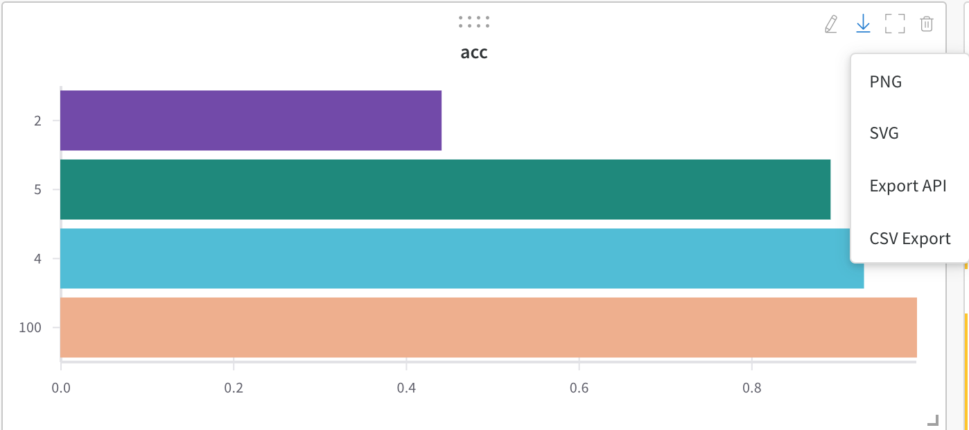 下向き矢印をクリックして、形式(.png、.svg、APIのエクスポート、CSVでのエクスポート)を選択すると、チャートをダウンロードできます。